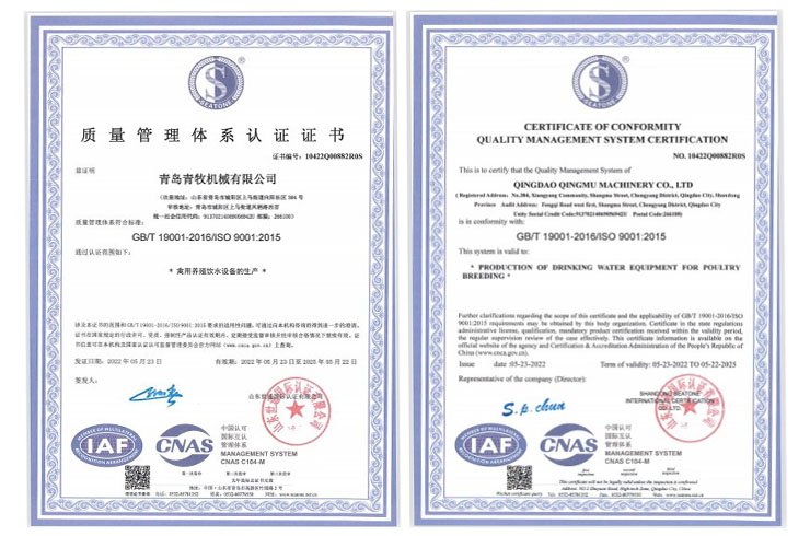 青島青牧機(jī)械有限公司成立于2013年,是一家集研發(fā)、生產(chǎn)、銷售、服務(wù)于一體的綜合性企業(yè)。公司專注于家禽飲水設(shè)備的研發(fā)和生產(chǎn),擁有專業(yè)的研發(fā)團(tuán)隊(duì)、先進(jìn)的加工設(shè)備以及自動(dòng)化組裝線,力求打造“簡單、高效、環(huán)保”的高端禽用飲水系統(tǒng)。